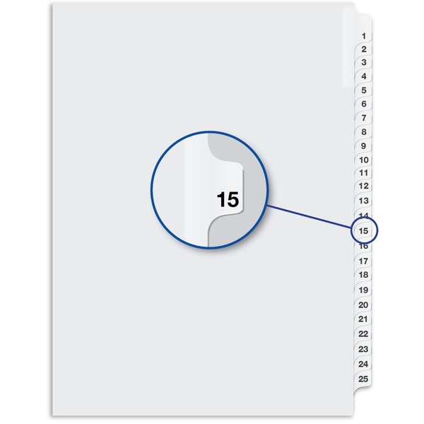 Davis Index Divider - Printed Tab(s) - 1/25 - Digit - 15 - 8.50" (215.90 mm) Divider Width x 11" (279.40 mm) Divider Length - White Divider - 25 / Pack